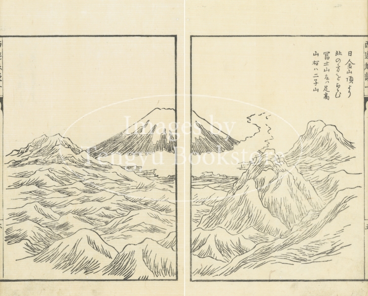 天明8年(1788)から寛政元年(1789)にかけて江戸から長崎へ旅をした江漢がその道中を記した本書は、富士山の図を皮切りに、西日本の名所風物、長崎での鯨漁、出島やオランダ人の様子等を描いた挿絵を多数収録しており、蘭学にも精通した知識人としても名高い江漢の旺盛な好奇心がうかがえる興味深い旅行記です。
