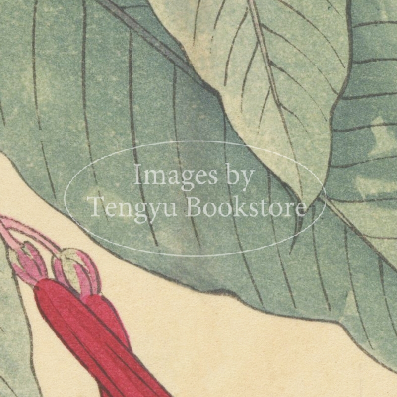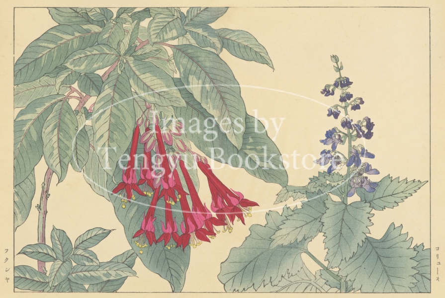 明治大正期の染色図案家 谷上広南(1879‐1928)による木版画集「西洋草花図譜」の1図。当時輸入された海外の草花をおよそ100点取り上げ、色鮮やかな木版画で描いた本作は、日本製のボタニカルアートとして人気の高い作品集です。