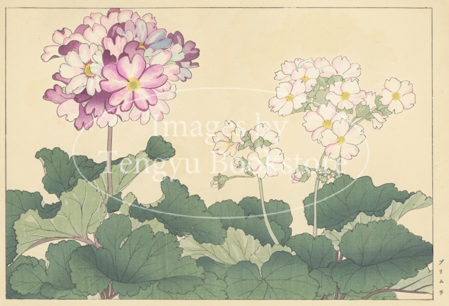 明治大正期の染色図案家 谷上広南(1879‐1928)による木版画集「西洋草花図譜」の1図。当時輸入された海外の草花をおよそ100点取り上げ、色鮮やかな木版画で描いた本作は、日本製のボタニカルアートとして人気の高い作品集です。