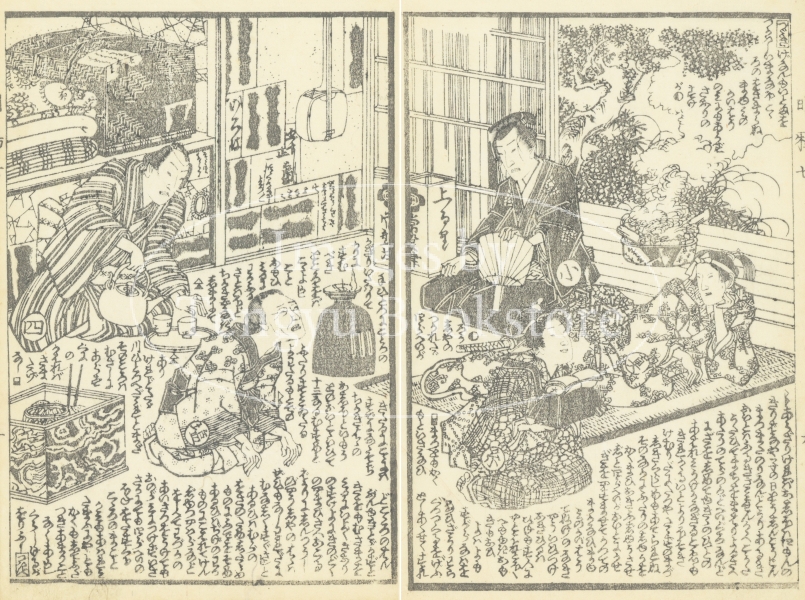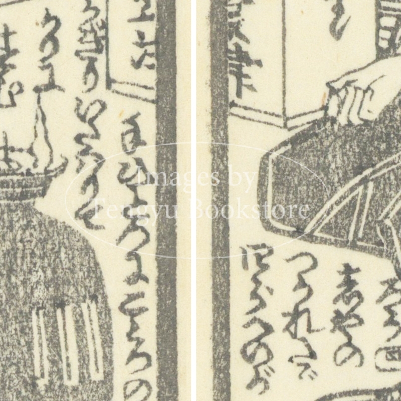 江戸時代後期の草双紙「明鴉墨画廼裲襠 (あけがらすすみえのうちかけ)」からの一枚。