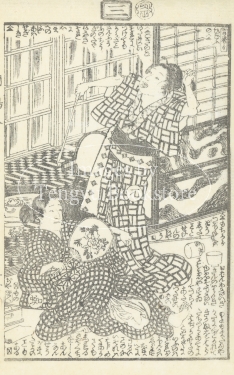 江戸時代後期の草双紙「明鴉墨画廼裲襠 (あけがらすすみえのうちかけ)」からの一枚。