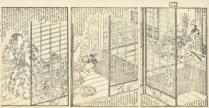 江戸時代後期の草双紙「明鴉墨画廼裲襠 (あけがらすすみえのうちかけ)」からの一枚。
