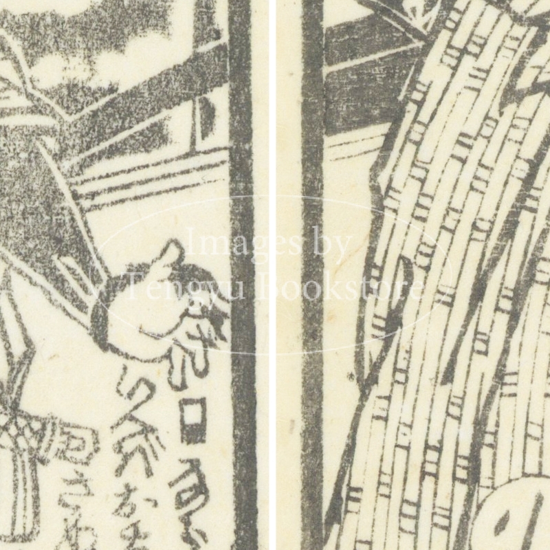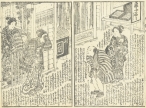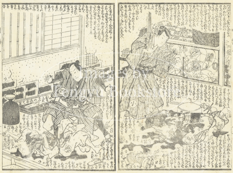 江戸時代後期の草双紙「明鴉墨画廼裲襠 (あけがらすすみえのうちかけ)」からの一枚。