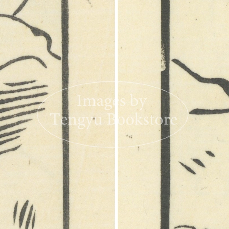 本来は2枚に分けて描かれた作品であるため、色味や図案の整合に若干の不統一があることをご了承ください。