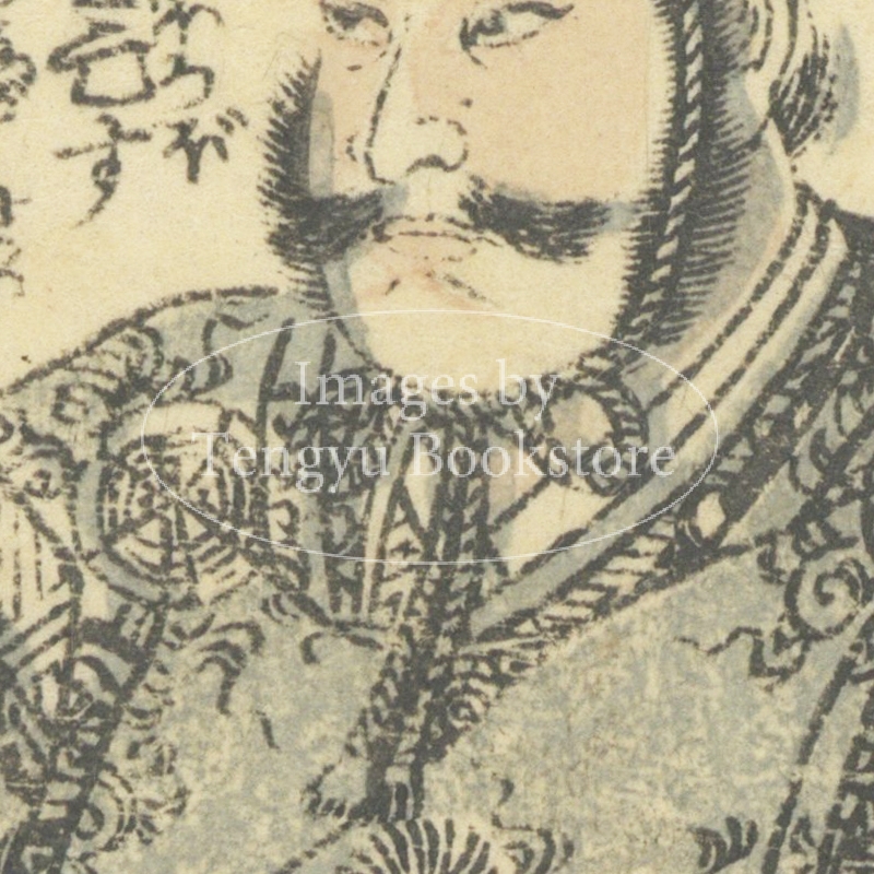 江戸後期の絵入り略伝集「英名百雄伝」からの一枚。安土桃山時代に活躍した武将たちを、一人一人の逸話とともに紹介したもの。挿絵は、幕末・明治時代の浮世絵師 歌川貞秀(玉蘭斎/五雲亭貞秀:1807-1879)が手がけています。