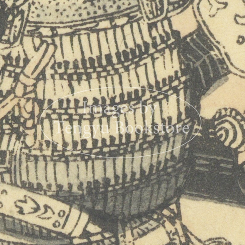 江戸後期の絵入り略伝集「英名百雄伝」からの一枚。安土桃山時代に活躍した武将たちを、一人一人の逸話とともに紹介したもの。挿絵は、幕末・明治時代の浮世絵師 歌川貞秀(玉蘭斎/五雲亭貞秀:1807-1879)が手がけています。