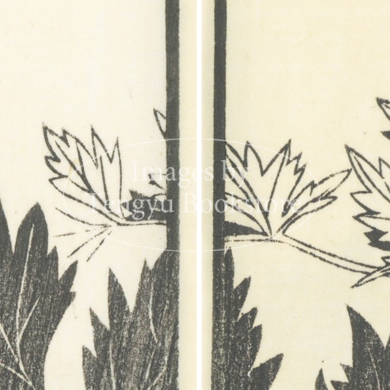 本来は2枚に分けて描かれた作品であるため、色味や図案の整合に若干の不統一があることをご了承ください。
