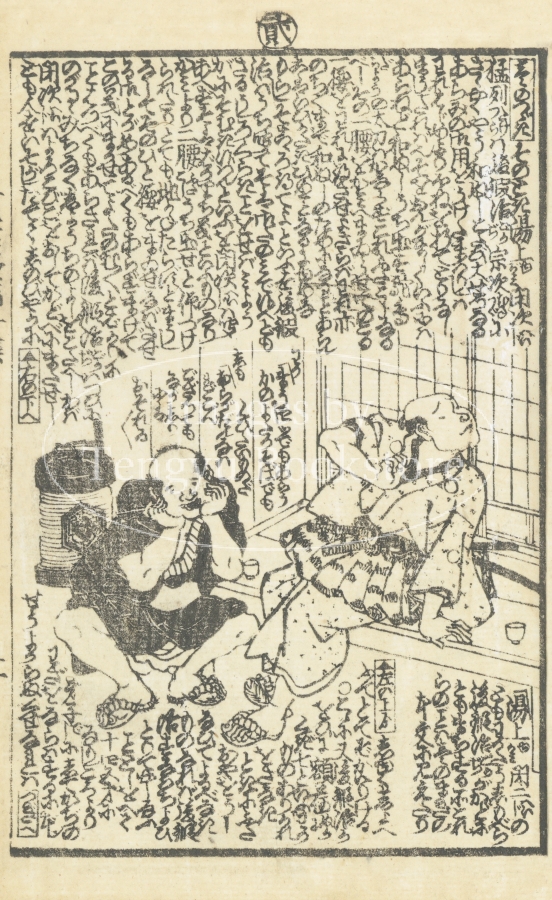 江戸時代後期の草双紙「女郎花五色石台(おみなえしごしきせきだい)」からの一枚。