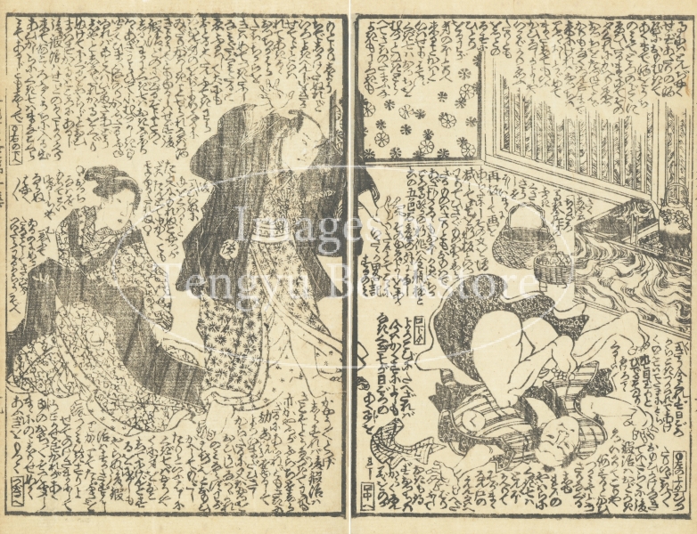 江戸時代後期の草双紙「女郎花五色石台(おみなえしごしきせきだい)」からの一枚。