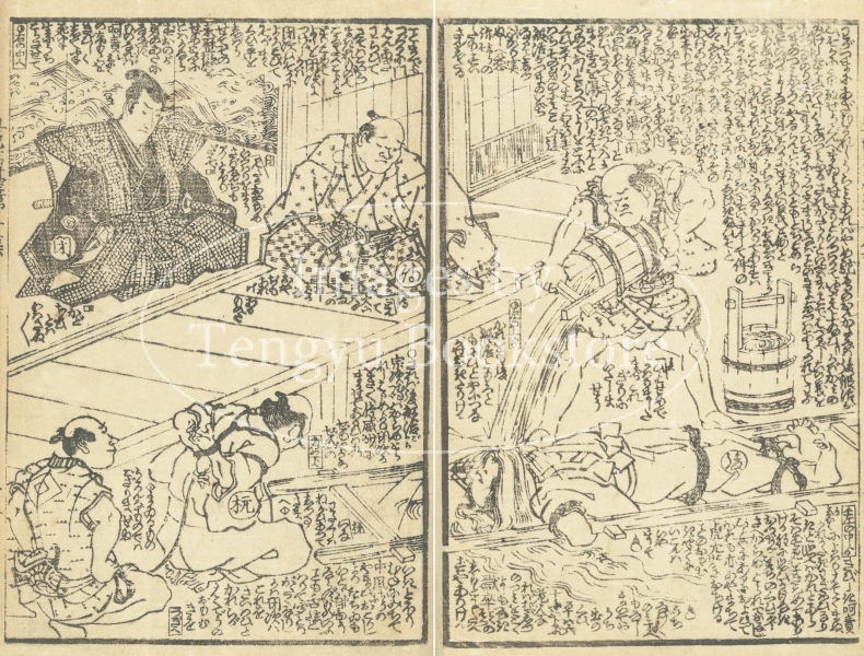 江戸時代後期の草双紙「女郎花五色石台(おみなえしごしきせきだい)」からの一枚。
