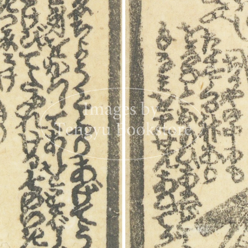 本来は2枚に分けて描かれた作品であるため、色味や図案の整合に若干の不統一があることをご了承ください。