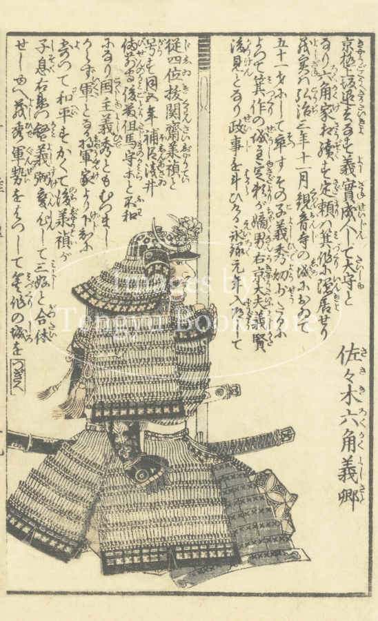 江戸後期の絵入り略伝集「英名百雄伝」からの一枚。安土桃山時代に活躍した武将たちを、一人一人の逸話とともに紹介したもの。挿絵は、幕末・明治時代の浮世絵師 歌川貞秀(玉蘭斎/五雲亭貞秀:1807-1879)が手がけています。
