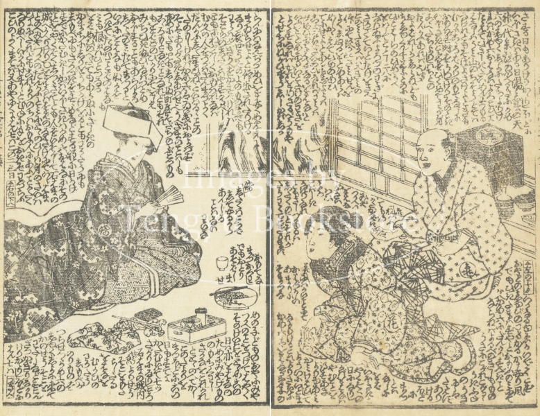 江戸時代後期の草双紙「女郎花五色石台(おみなえしごしきせきだい)」からの一枚。
