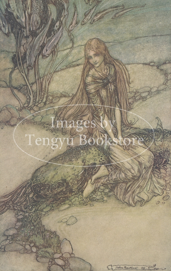 水の精と騎士との悲恋物語である「ウンディーネ」に、イギリスを代表する挿絵画家のひとり、アーサー・ラッカム(1867-1939)がイラストをつけた挿絵本「ウンディーネ」中の1枚。