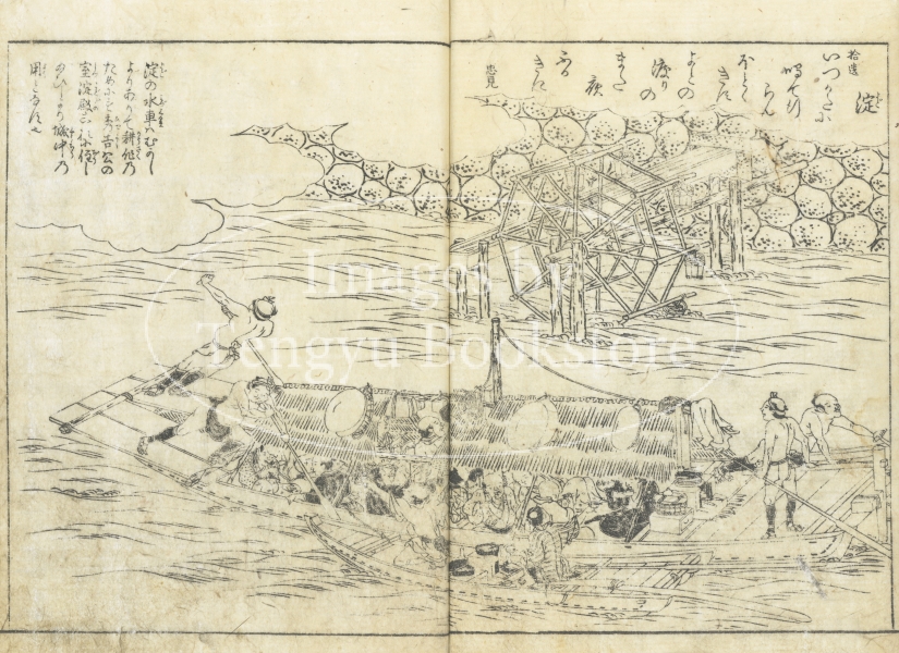編者である京都の文人 秋里籬島(あきさと りとう)と、挿絵を手掛けた大阪の浮世絵師、竹原春朝斎(たけはらしゅんちょうさい)は、これ以後、大阪の題材にした「摂津名所図会」をはじめ、日本各地の絵入り地誌を作成することになる、「名所図絵」の第一人者です。