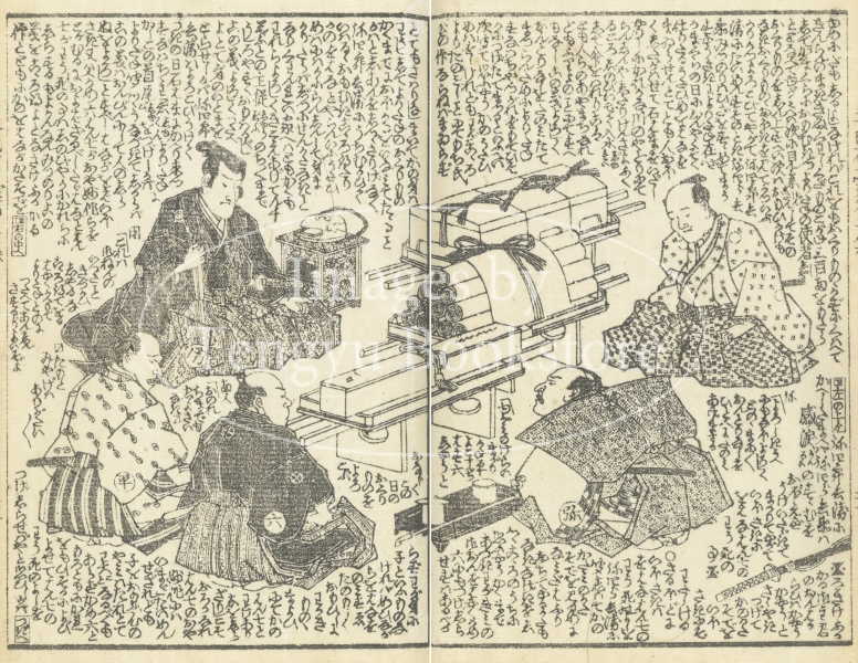 江戸時代後期の草双紙「女郎花五色石台(おみなえしごしきせきだい)」からの一枚。