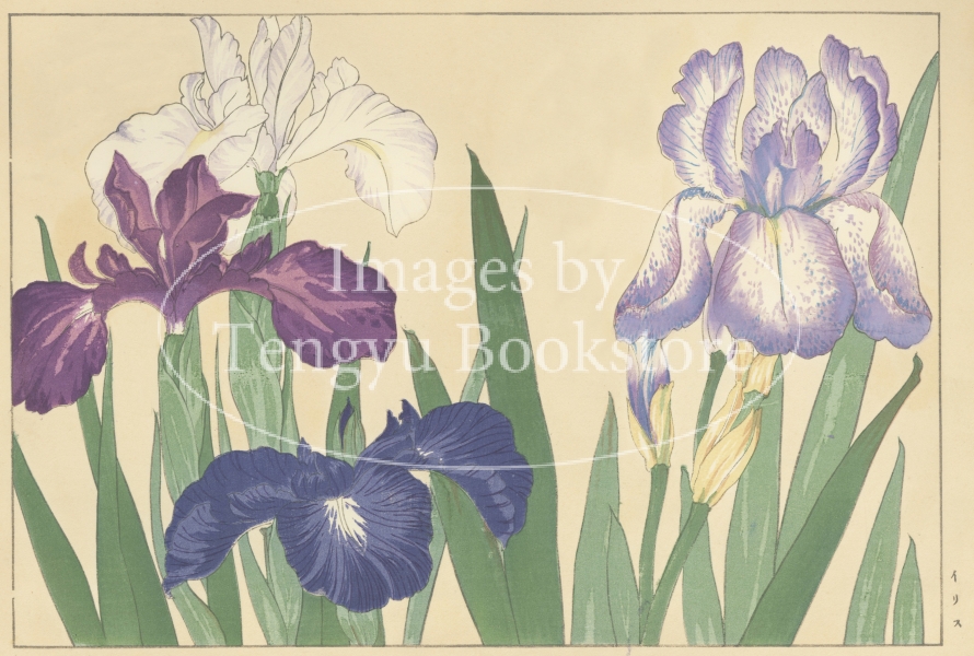 明治大正期の染色図案家 谷上広南(1879‐1928)による木版画集「西洋草花図譜」の1図。当時輸入された海外の草花をおよそ100点取り上げ、色鮮やかな木版画で描いた本作は、日本製のボタニカルアートとして人気の高い作品集です。
