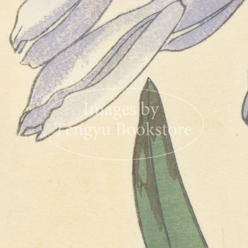 明治大正期の染色図案家 谷上広南(1879‐1928)による木版画集「西洋草花図譜」の1図。当時輸入された海外の草花をおよそ100点取り上げ、色鮮やかな木版画で描いた本作は、日本製のボタニカルアートとして人気の高い作品集です。