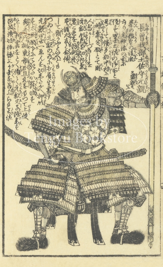 江戸後期の絵入り略伝集「英名百雄伝」からの一枚。安土桃山時代に活躍した武将たちを、一人一人の逸話とともに紹介したもの。挿絵は、幕末・明治時代の浮世絵師 歌川貞秀(玉蘭斎/五雲亭貞秀:1807-1879)が手がけています。
