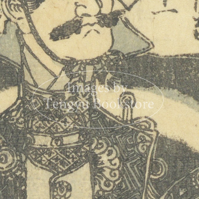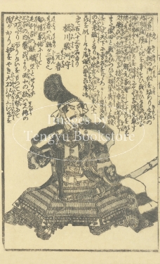 江戸後期の絵入り略伝集「英名百雄伝」からの一枚。安土桃山時代に活躍した武将たちを、一人一人の逸話とともに紹介したもの。挿絵は、幕末・明治時代の浮世絵師 歌川貞秀(玉蘭斎/五雲亭貞秀:1807-1879)が手がけています。