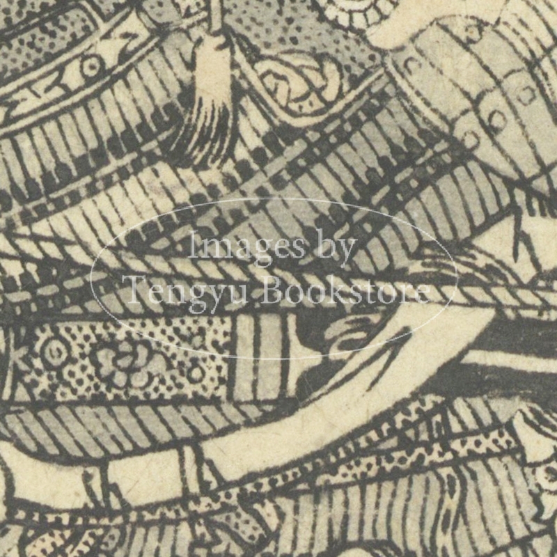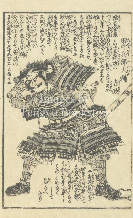 江戸後期の絵入り略伝集「英名百雄伝」からの一枚。安土桃山時代に活躍した武将たちを、一人一人の逸話とともに紹介したもの。挿絵は、幕末・明治時代の浮世絵師 歌川貞秀(玉蘭斎/五雲亭貞秀:1807-1879)が手がけています。