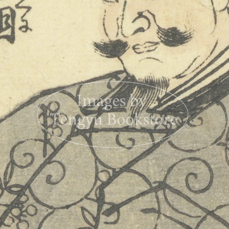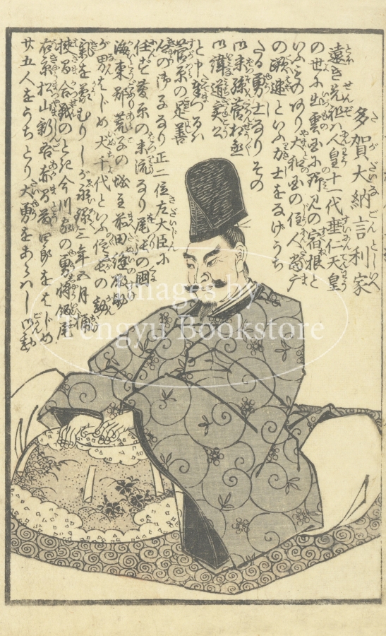 江戸後期の絵入り略伝集「英名百雄伝」からの一枚。安土桃山時代に活躍した武将たちを、一人一人の逸話とともに紹介したもの。挿絵は、幕末・明治時代の浮世絵師 歌川貞秀(玉蘭斎/五雲亭貞秀:1807-1879)が手がけています。