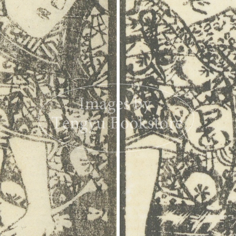 本来は2枚に分けて描かれた作品であるため、色味や図案の整合に若干の不統一があることをご了承ください。