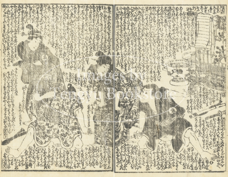 江戸時代後期の草双紙「女郎花五色石台(おみなえしごしきせきだい)」からの一枚。