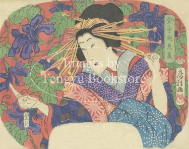 団扇絵とは、団扇の形に刷った浮世絵のこと。団扇の骨組みに貼りつけて使用されていました。