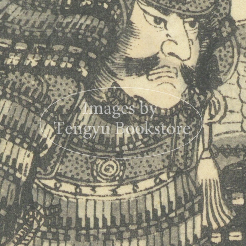 江戸後期の絵入り略伝集「英名百雄伝」からの一枚。安土桃山時代に活躍した武将たちを、一人一人の逸話とともに紹介したもの。挿絵は、幕末・明治時代の浮世絵師 歌川貞秀(玉蘭斎/五雲亭貞秀:1807-1879)が手がけています。