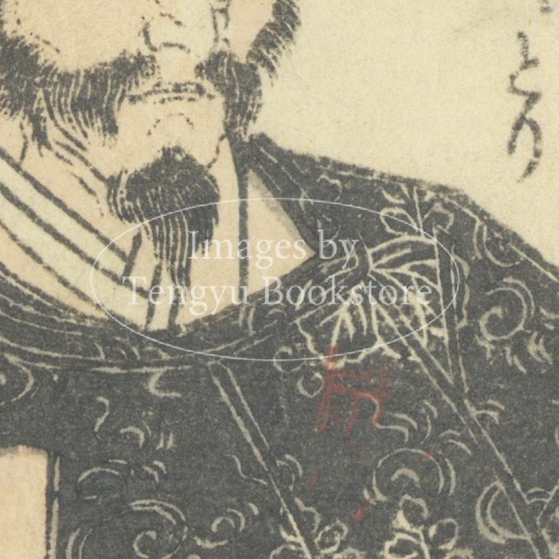 江戸後期の絵入り略伝集「英名百雄伝」からの一枚。安土桃山時代に活躍した武将たちを、一人一人の逸話とともに紹介したもの。挿絵は、幕末・明治時代の浮世絵師 歌川貞秀(玉蘭斎/五雲亭貞秀:1807-1879)が手がけています。