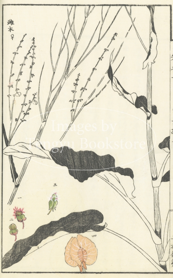 江戸時代後期の本草学者 飯沼慾斎(1783~1865)による植物図鑑「草木図説」中の1図。およそ1000点に上る植物を取り上げ、正確な図とともに解説した本書は、リンネの分類法を取り入れた日本で最初の近代的植物図鑑。本図は明治時代に刊行された増訂版のもの。