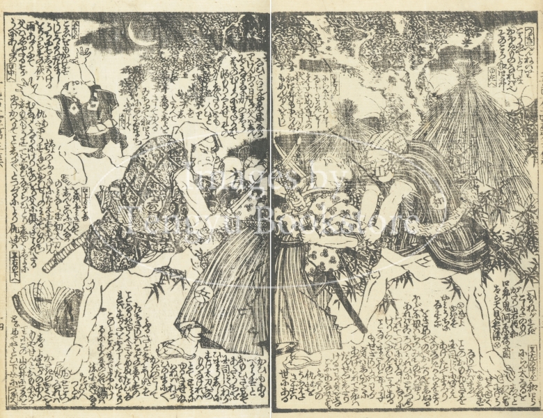 初編〜三編を手がけた江戸後期の戯作者 曲亭馬琴(1767-1848)の死後、柳下亭種員(1807-1858)、柳水亭種清(1823-1907)らに引き継がれて完成したもの。