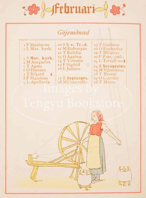 19-20世紀スウェーデンの絵本作家オッティリア・アーデルボリ(1855-1936)の冊子型カレンダー「アルマナック(暦) 」1889年版。