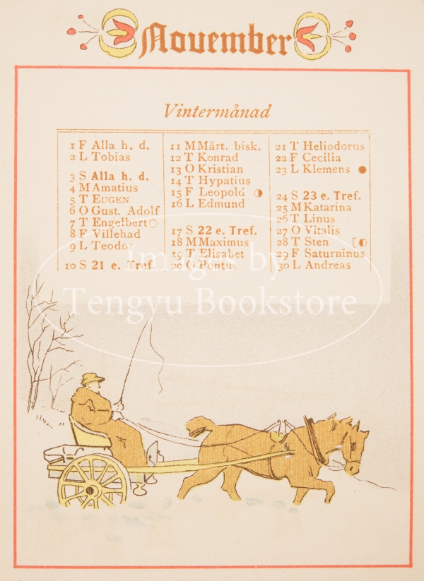19-20世紀スウェーデンの絵本作家オッティリア・アーデルボリ(1855-1936)の冊子型カレンダー「アルマナック(暦) 」1889年版。