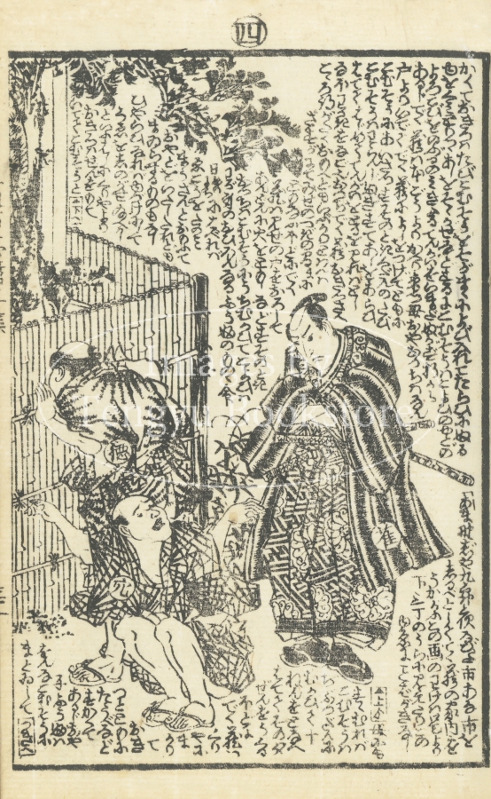 江戸時代後期の草双紙「女郎花五色石台(おみなえしごしきせきだい)」からの一枚。