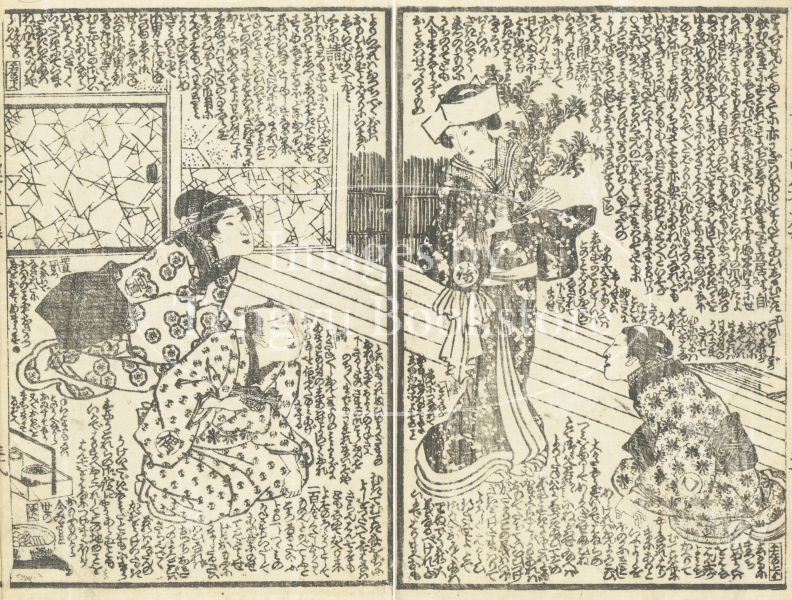 江戸時代後期の草双紙「女郎花五色石台(おみなえしごしきせきだい)」からの一枚。
