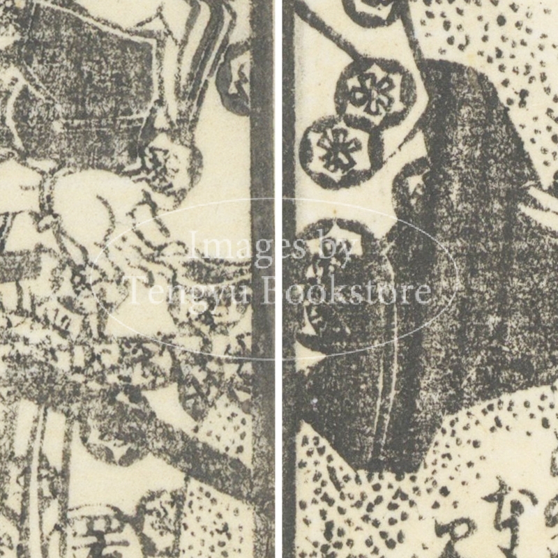 本来は2枚に分けて描かれた作品であるため、色味や図案の整合に若干の不統一があることをご了承ください。