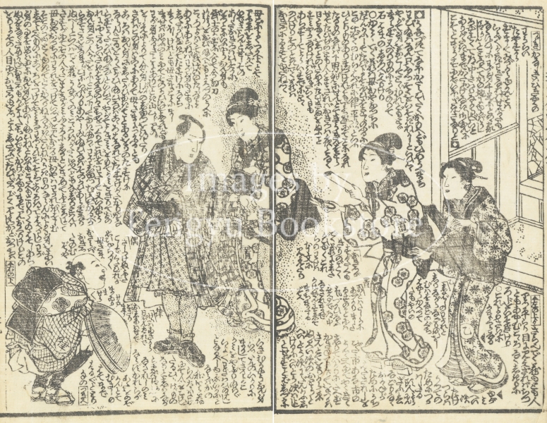江戸時代後期の草双紙「女郎花五色石台(おみなえしごしきせきだい)」からの一枚。