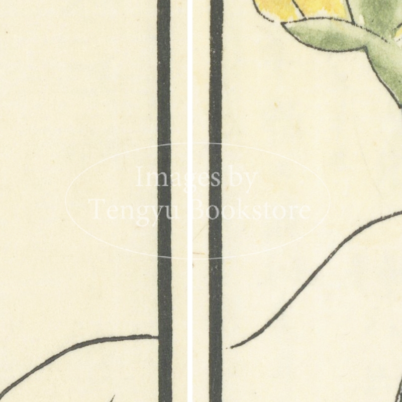 本来は2枚に分けて描かれた作品であるため、色味や図案の整合に若干の不統一があることをご了承ください。