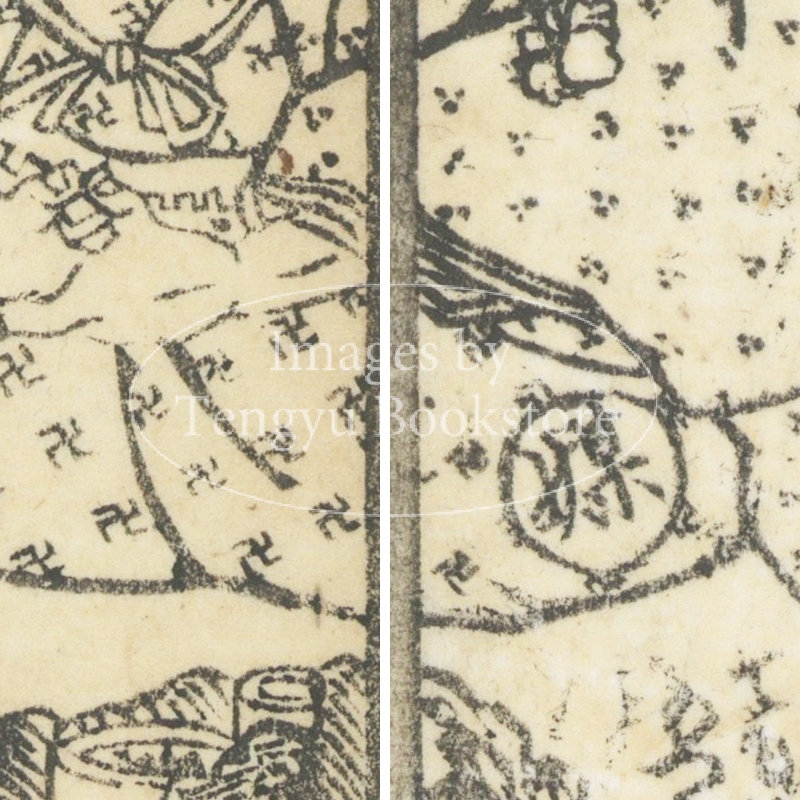 本来は2枚に分けて描かれた作品であるため、色味や図案の整合に若干の不統一があることをご了承ください。