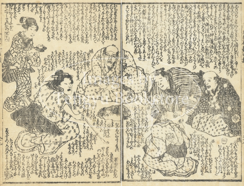 江戸時代後期の草双紙「女郎花五色石台(おみなえしごしきせきだい)」からの一枚。