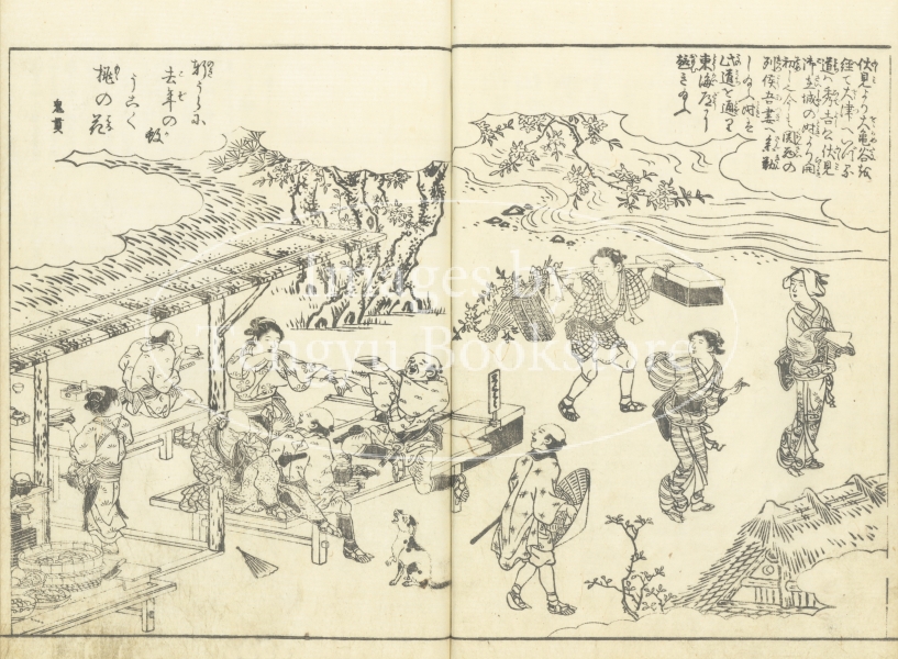 編者である京都の文人 秋里籬島(あきさと りとう)と、挿絵を手掛けた大阪の浮世絵師、竹原春朝斎(たけはらしゅんちょうさい)は、これ以後、大阪の題材にした「摂津名所図会」をはじめ、日本各地の絵入り地誌を作成することになる、「名所図絵」の第一人者です。