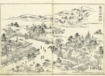 安永9年(1780)に初版を発行した「都(京都)名所図会」は、従来の地誌に比べ挿絵に重点を置くことで、当時高い人気を博した、目で楽しめる地誌「名所図会」の先駆け。