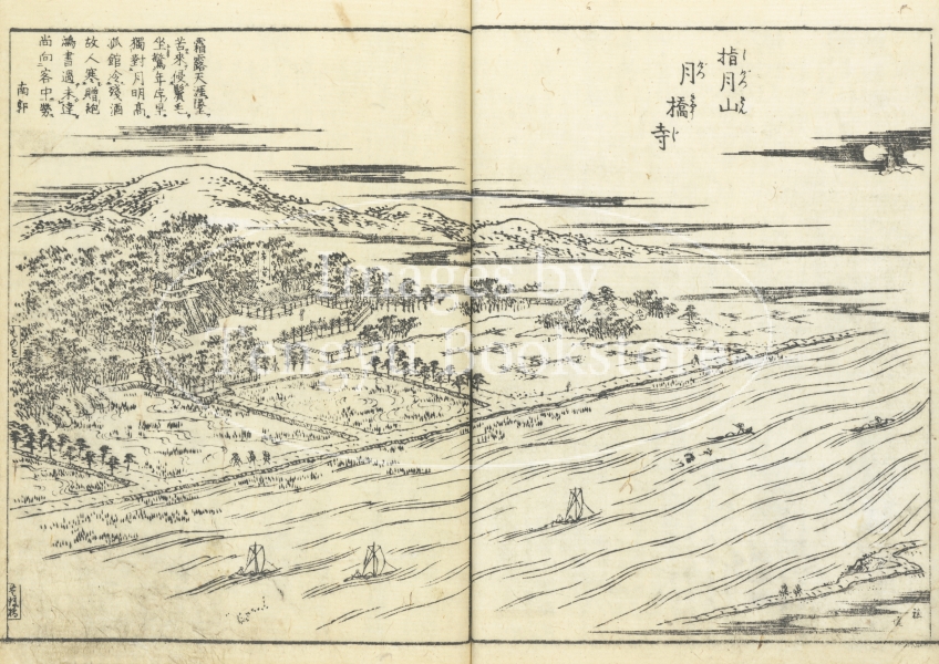 編者である京都の文人 秋里籬島(あきさと りとう)と、挿絵を手掛けた大阪の浮世絵師、竹原春朝斎(たけはらしゅんちょうさい)は、これ以後、大阪の題材にした「摂津名所図会」をはじめ、日本各地の絵入り地誌を作成することになる、「名所図絵」の第一人者です。