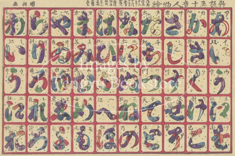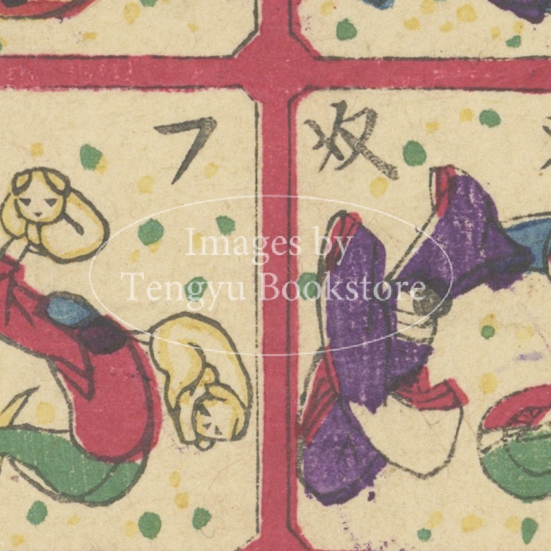 幕末・明治期の浮世絵師 歌川国利(1847-1899)による、明治時代のおもちゃ絵。おもちゃ絵とは遊びや軽い手習いのために使われた子供向けの浮世絵のこと。