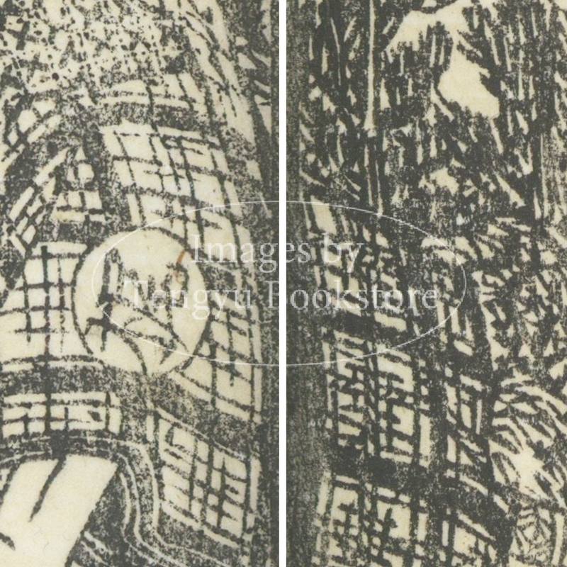 本来は2枚に分けて描かれた作品であるため、色味や図案の整合に若干の不統一があることをご了承ください。