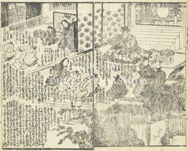 江戸時代後期の草双紙「女郎花五色石台(おみなえしごしきせきだい)」からの一枚。