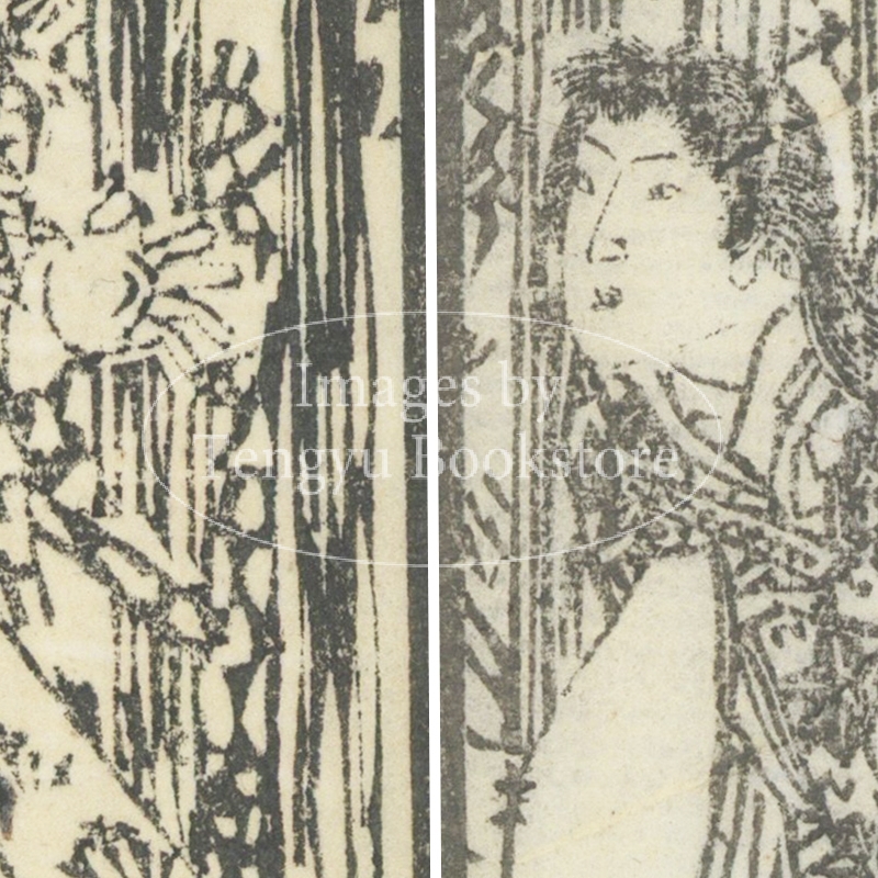 本来は2枚に分けて描かれた作品であるため、色味や図案の整合に若干の不統一があることをご了承ください。