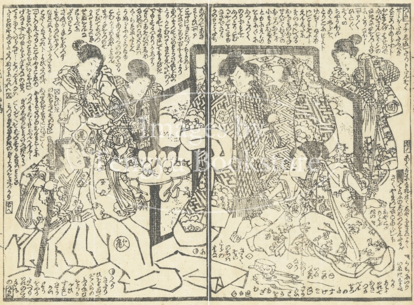 江戸時代後期の草双紙「女郎花五色石台(おみなえしごしきせきだい)」からの一枚。